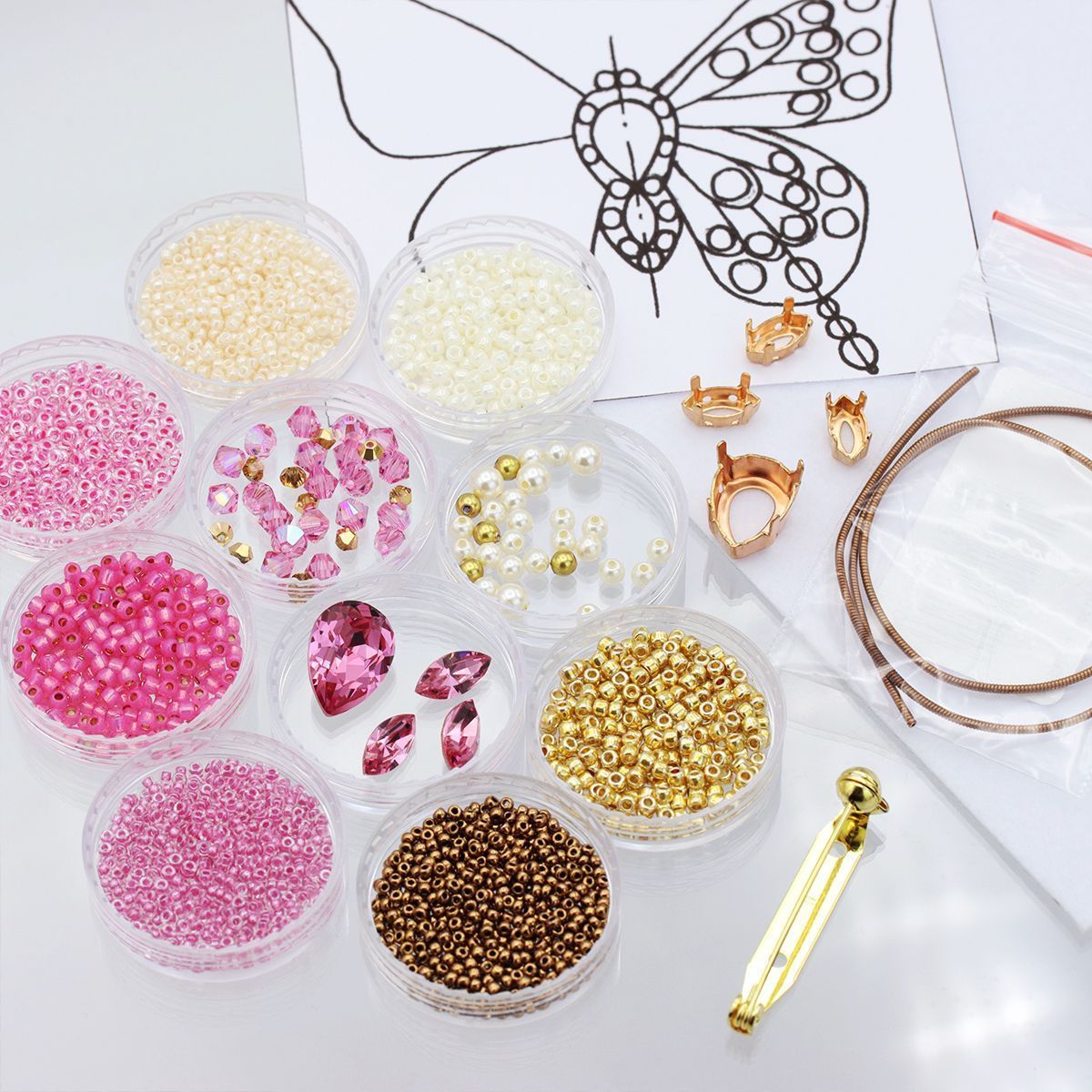 Набор материалов брошь "Бабочка" розовая