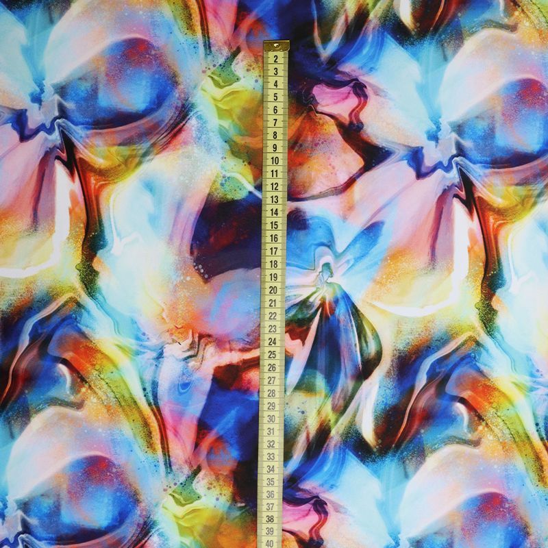 Эта ткань создана для тех, кто знает цену движению. Высокая плотность полотна, эластичность во всех направлениях, мягкость и упругая структура — всё это делает трикотажное полотно на основе полиэстера и эластана настоящей находкой для пошива купальников, костюмов, леггинсов, а иногда и цельных сценических нарядов. Благодаря сочетанию плотной посадки и ярких принтов ткань не просвечивает, даже в растянутом виде, оставаясь визуально целостной. Это особенно важно при работе с крупными узорами, клеткой, полосками и абстрактными мотивами, где требуется чёткая геометрия. Кроме того, Friedman отлично справляется с изгибами и объёмами: материал не деформируется, не даёт пузырей, не искажает пропорции изделия.