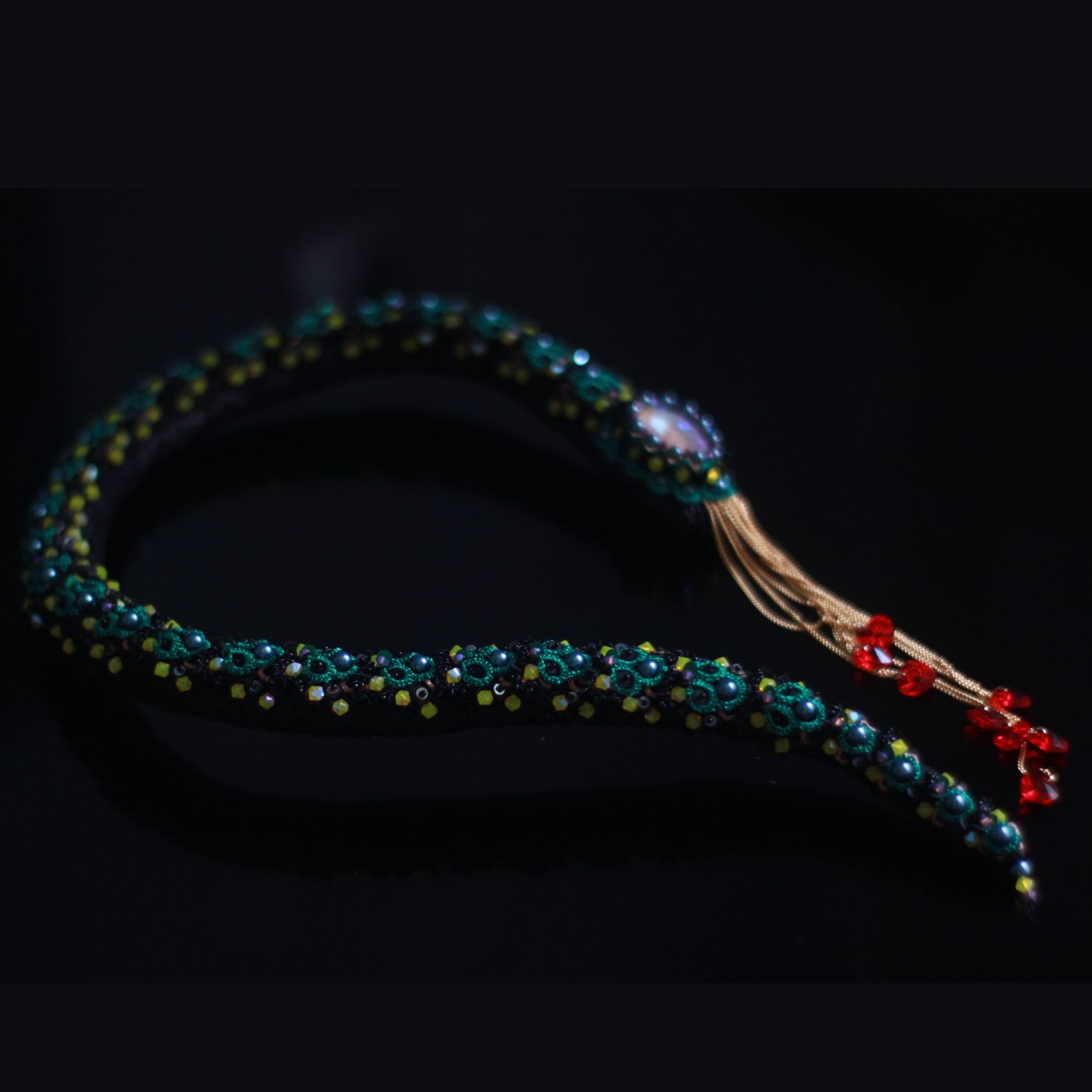 Моя основная техника, в которой я работаю, это фриволите. Много лет я не решалась принять участие в конкурсах с работой в технике фриволите. Но пришёл ко мне образ змеи, и я решила воплотить её в той технике, которой дышу и не могу надышаться. Которой я могу заниматься часами напролёт.
