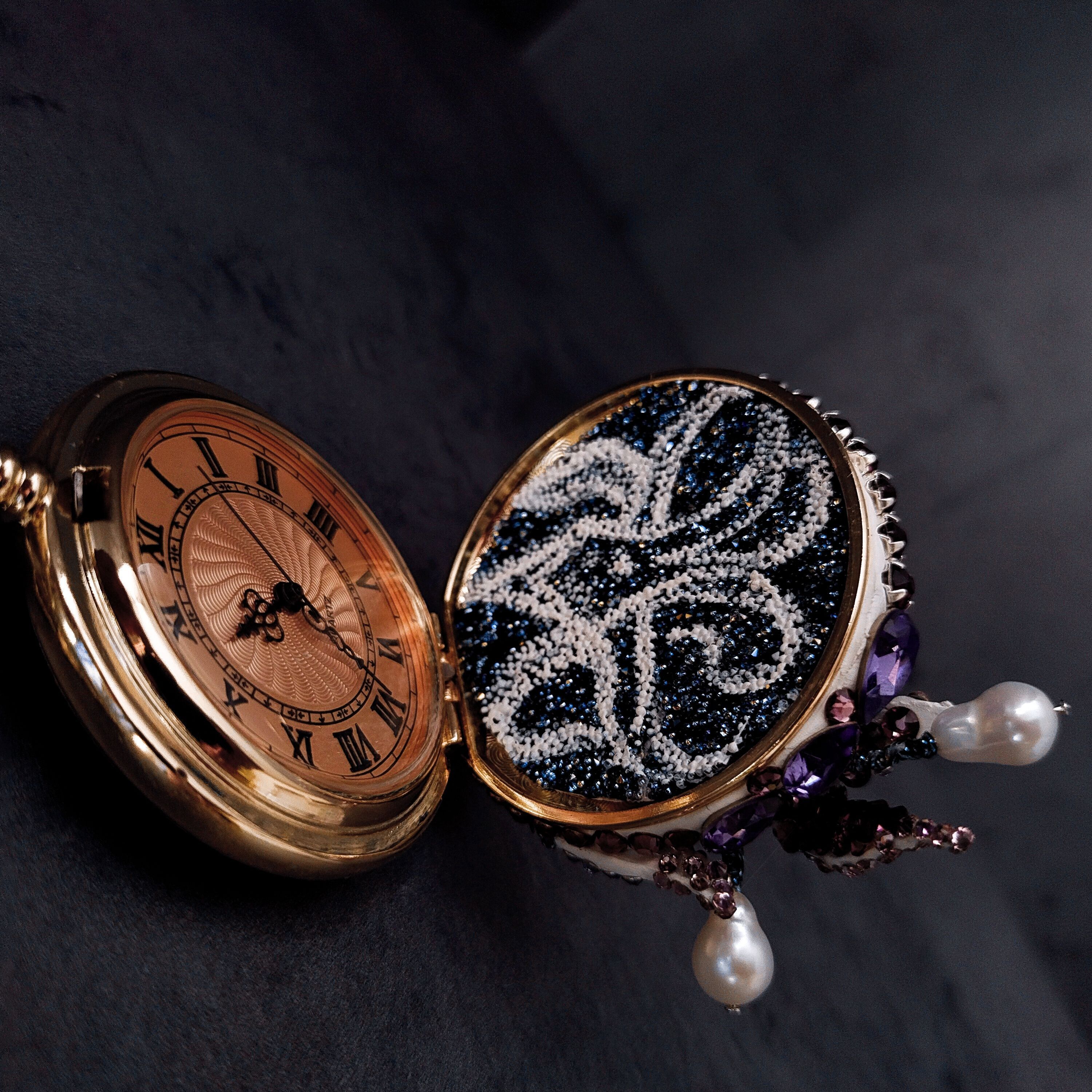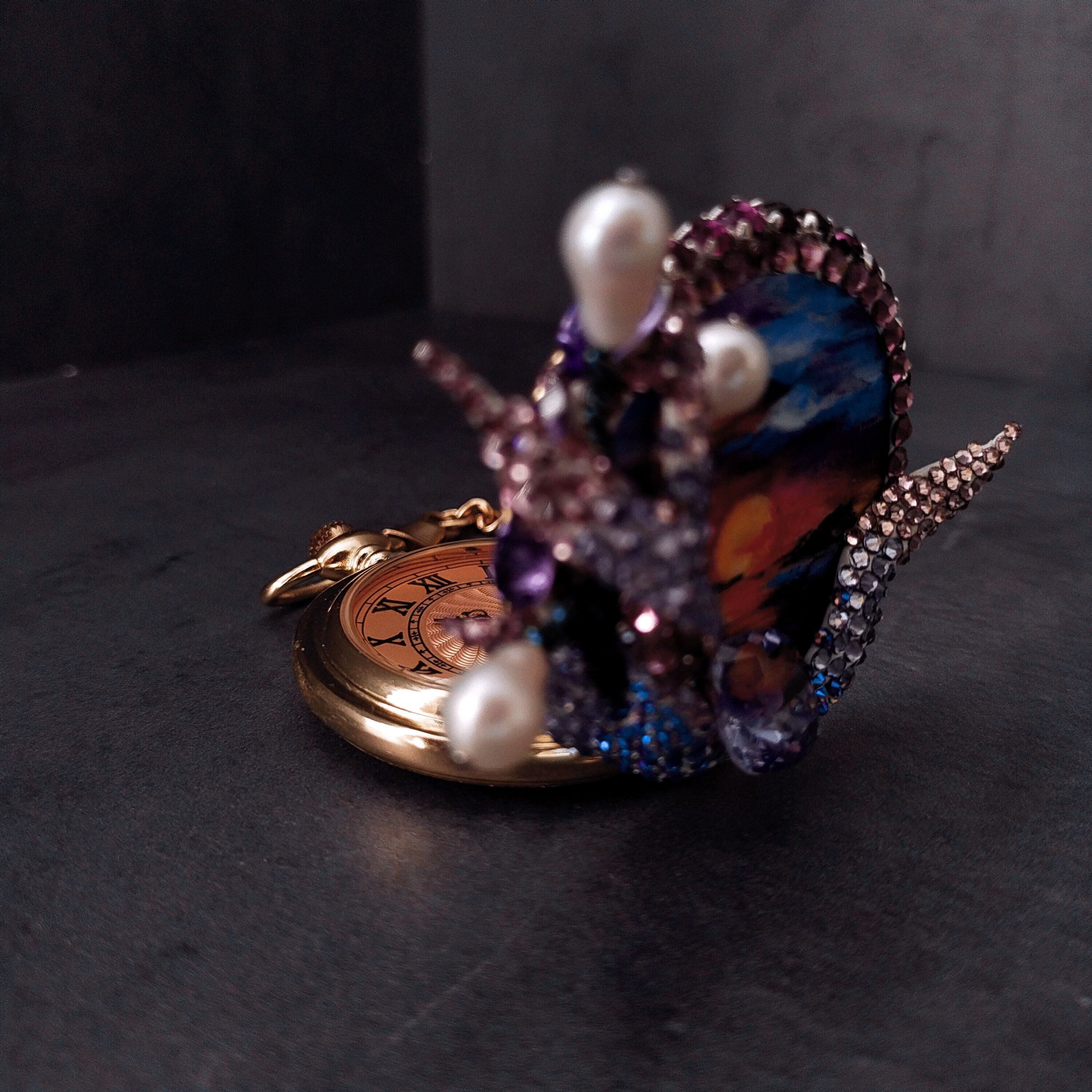 Погружаясь с головой в работу мастер не замечает течения времени. Именно поэтому основой работы являются карманные часы - отсылка к тому что время так же безгранично. Оно было до нас, будет и после.
