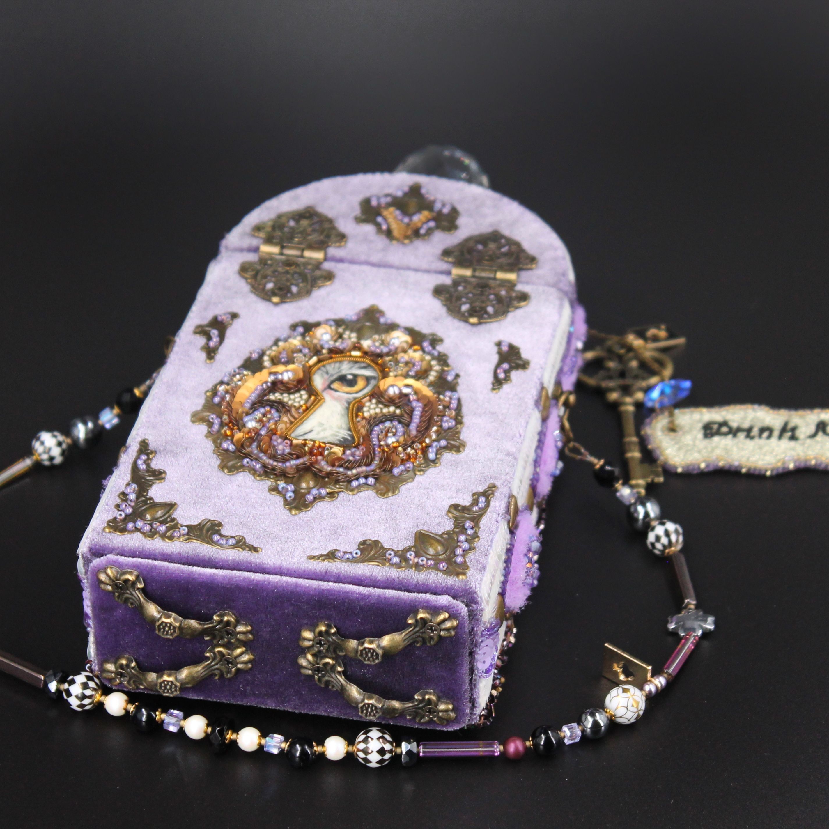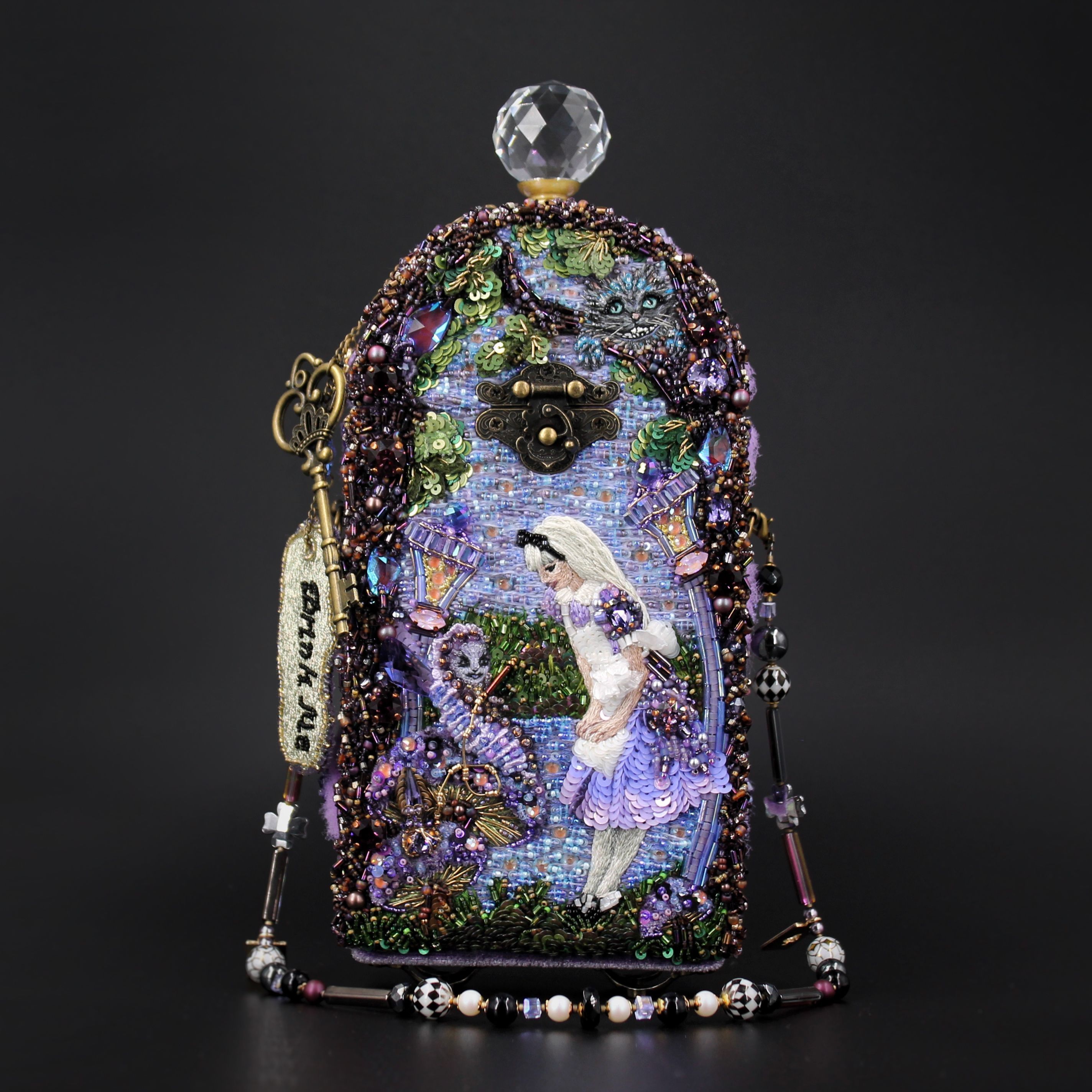 Сумочка в форме сосуда с надписью “Drink Me” предлагает окунуться в мир фантазий.