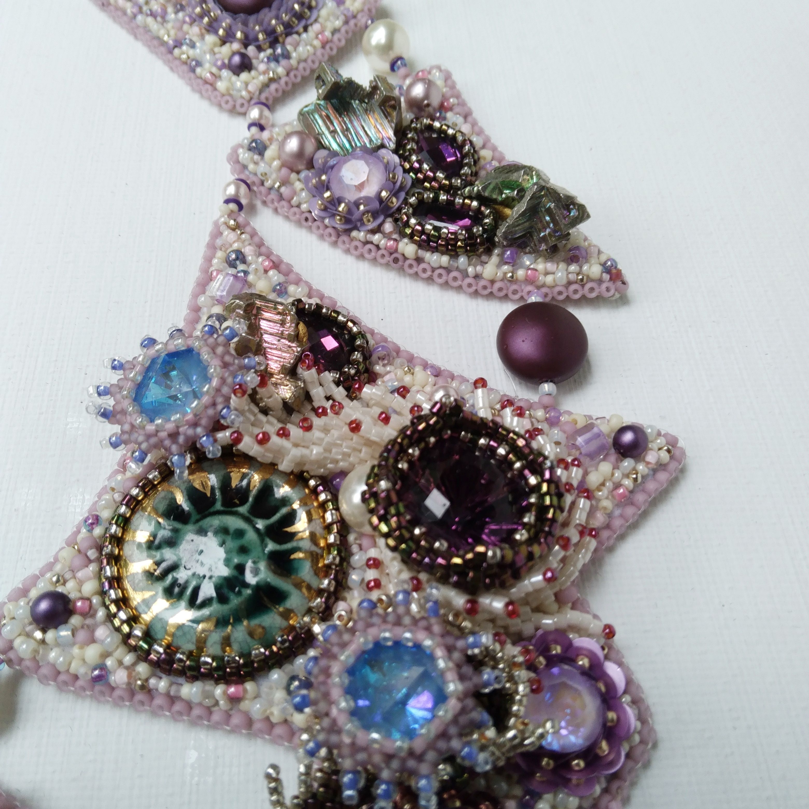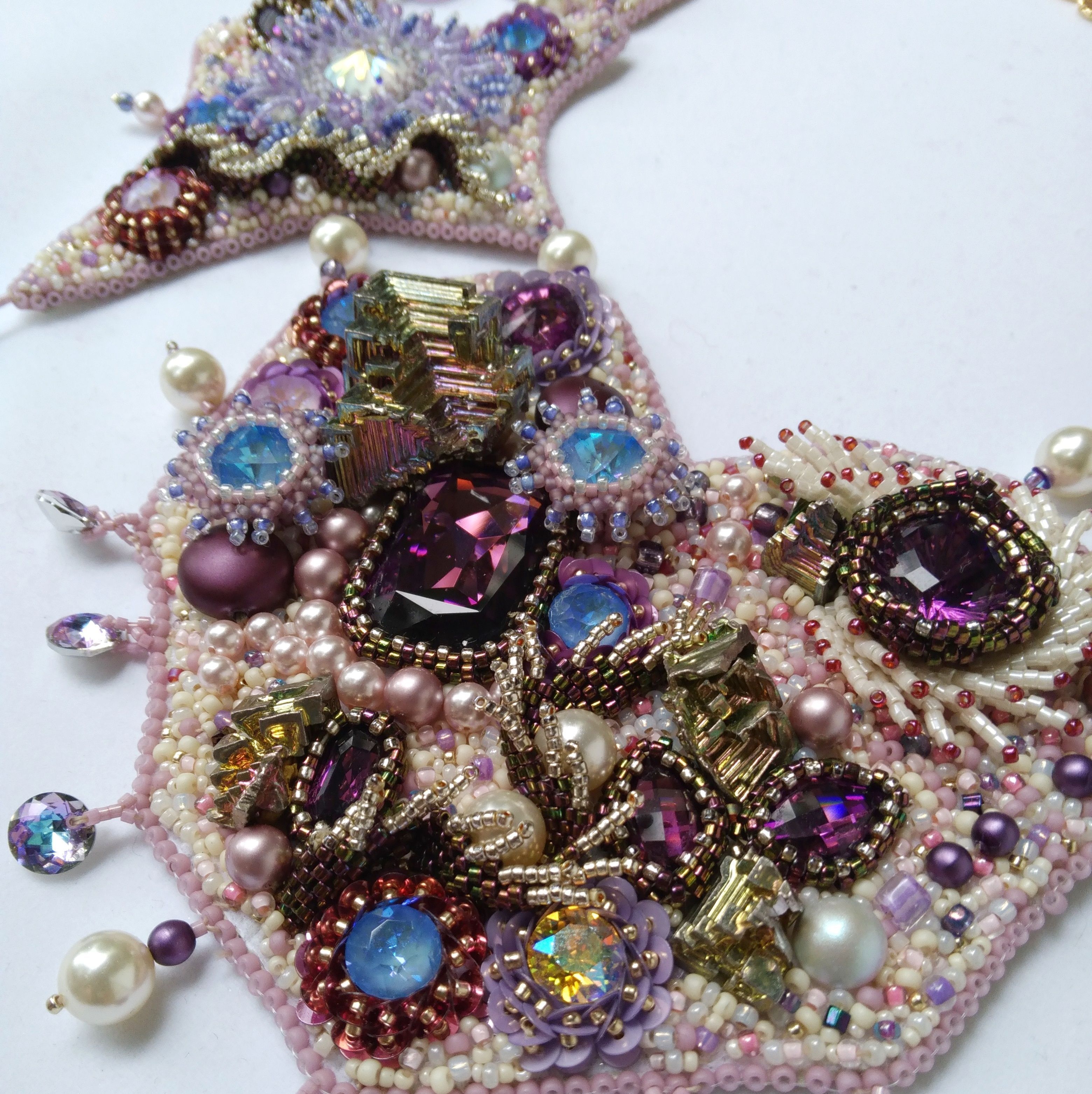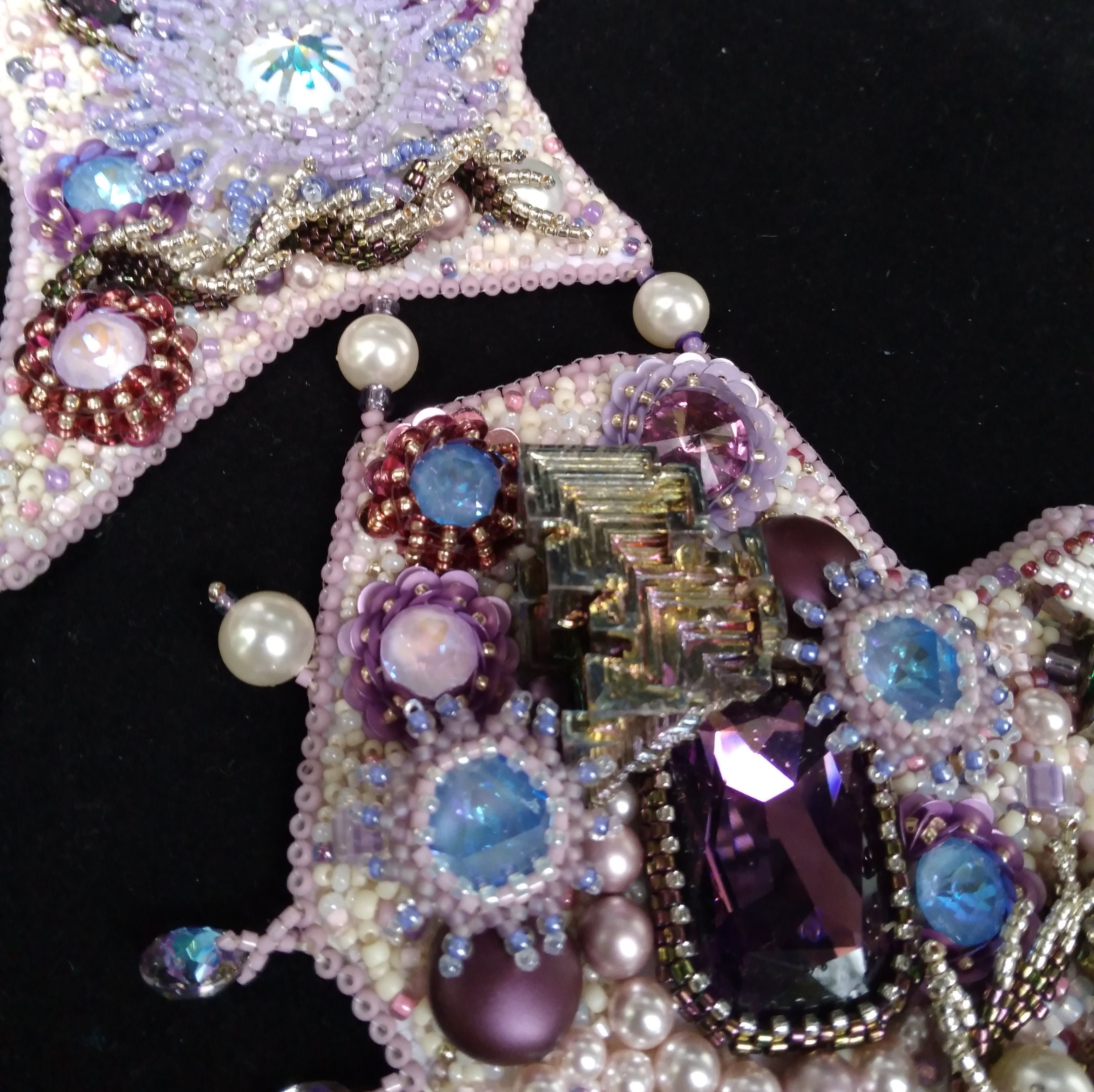 В этом колье в гости к крисаллам EVOLI я пригасила кристаллы висмута и авторский фарфоровый кабошон