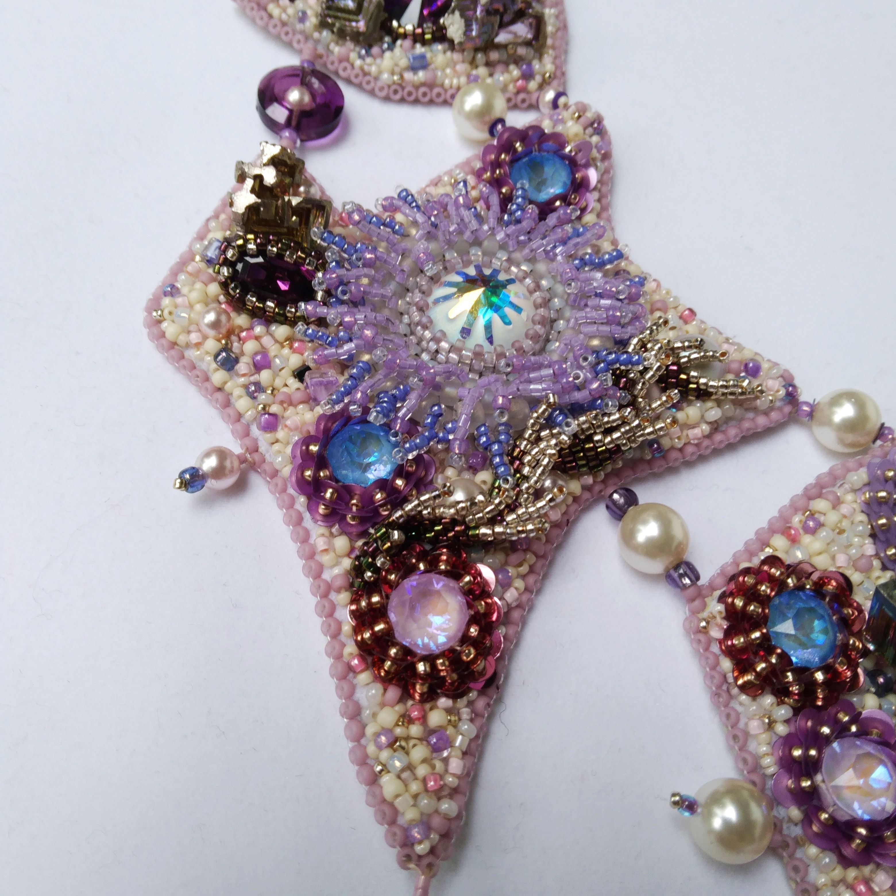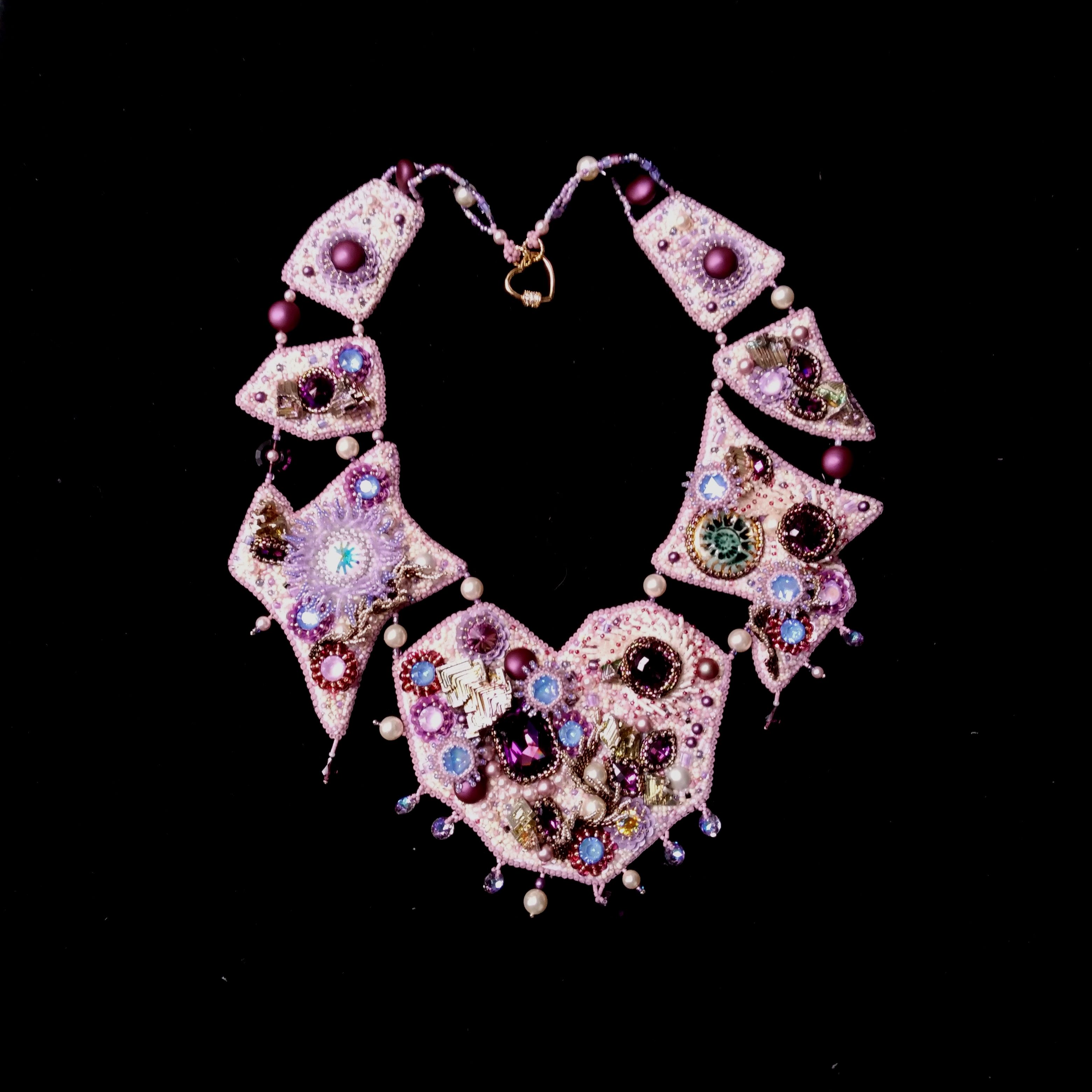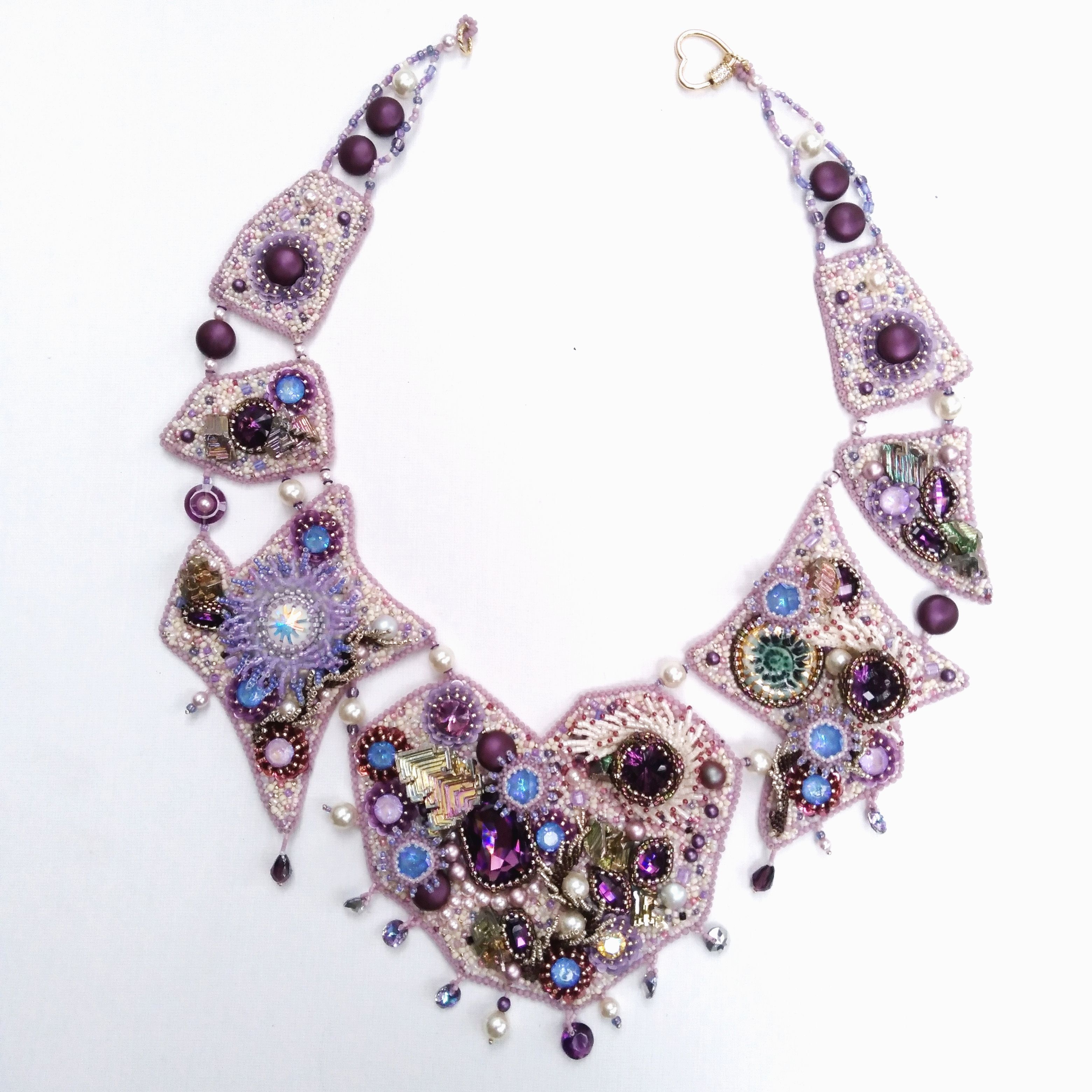 В этом колье в гости к крисаллам EVOLI я пригасила кристаллы висмута и авторский фарфоровый кабошон