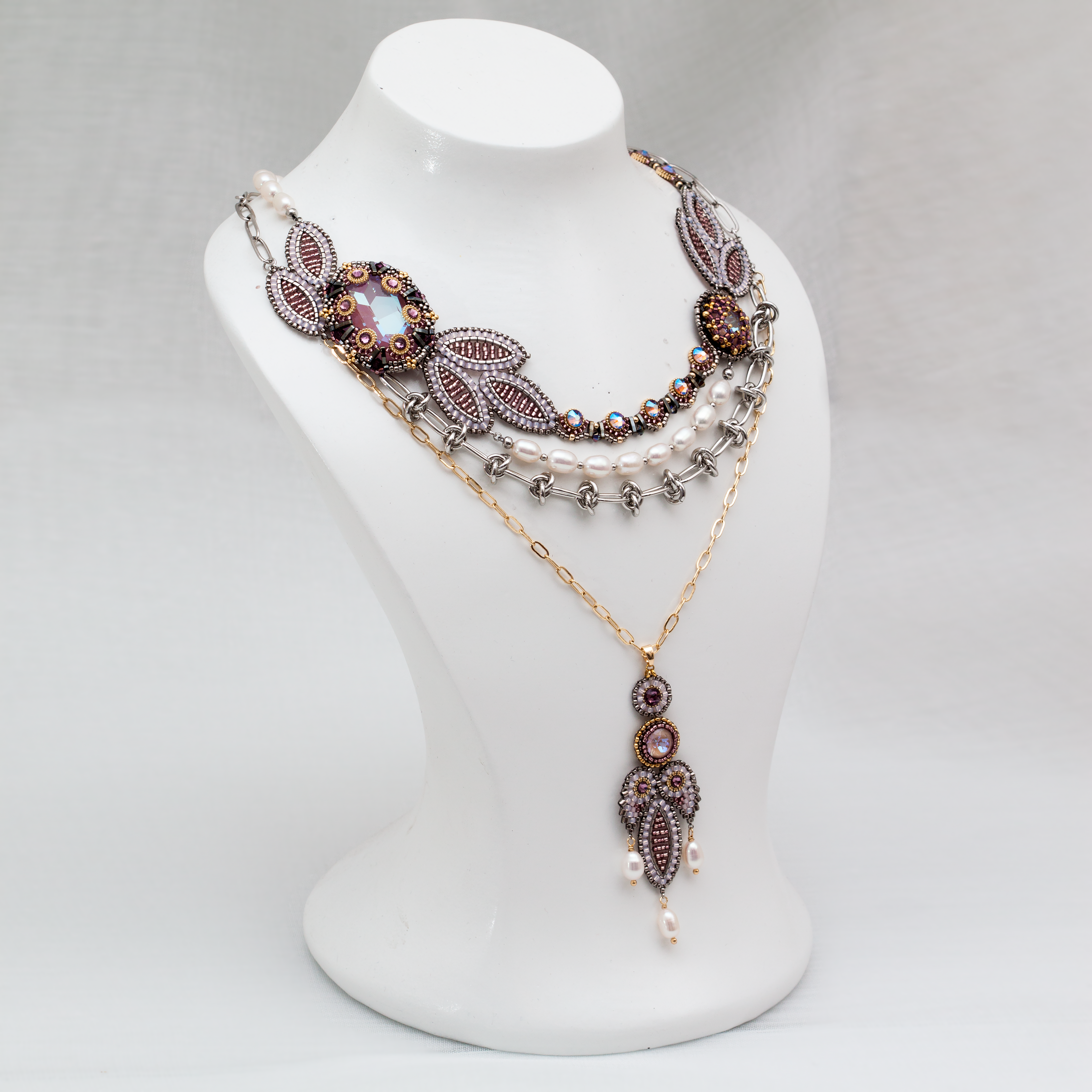 Сегодня она освещает мою дорогу к рубежам Вселенной Эволи. В дар преподношу ей это колье с ослепительными кристаллами в обрамлении лавровых ветвей. Сияющее и женственное украшение с продуманным до мелочей дизайном, под стать музе способной вдохновлять мастера декоративно-прикладного искусства.