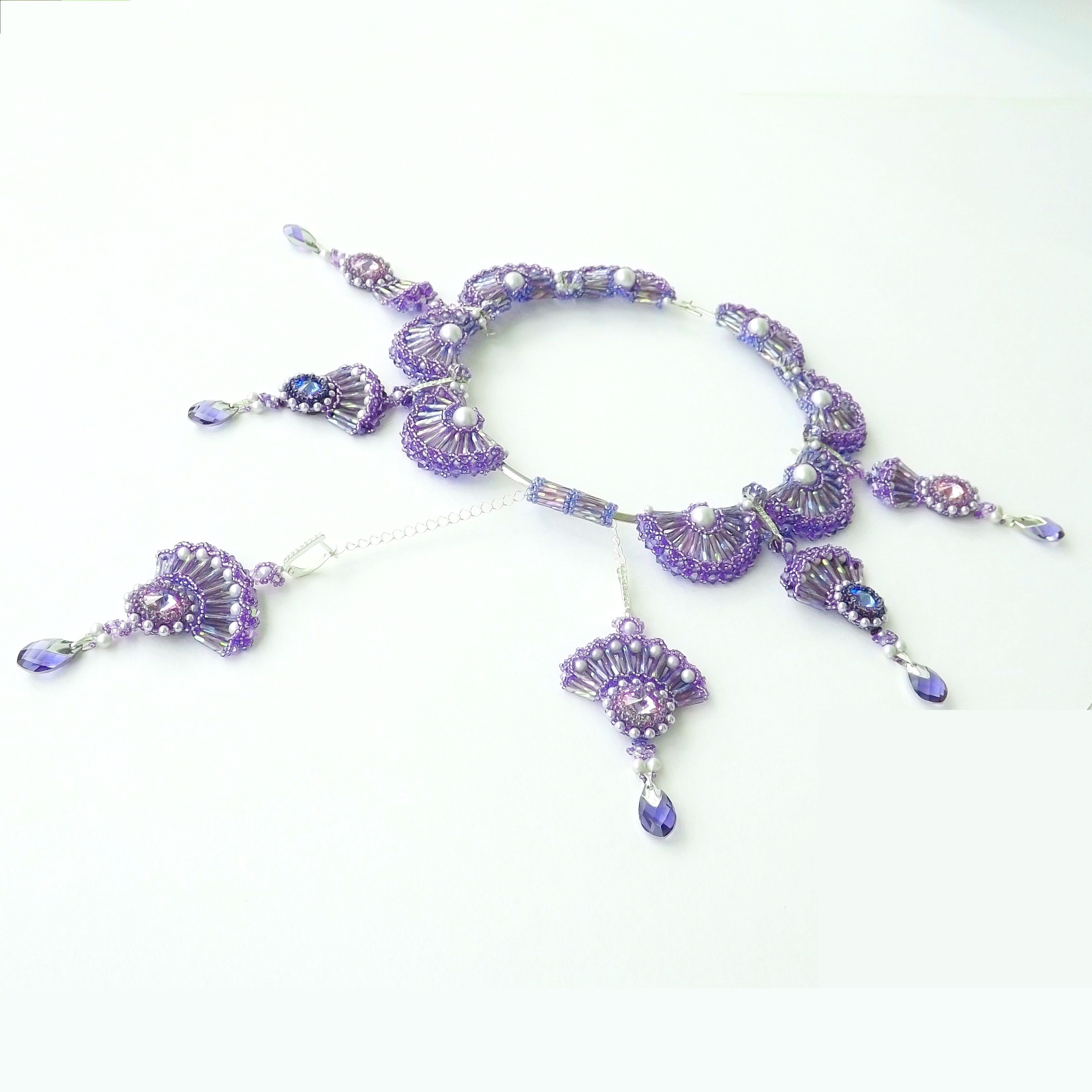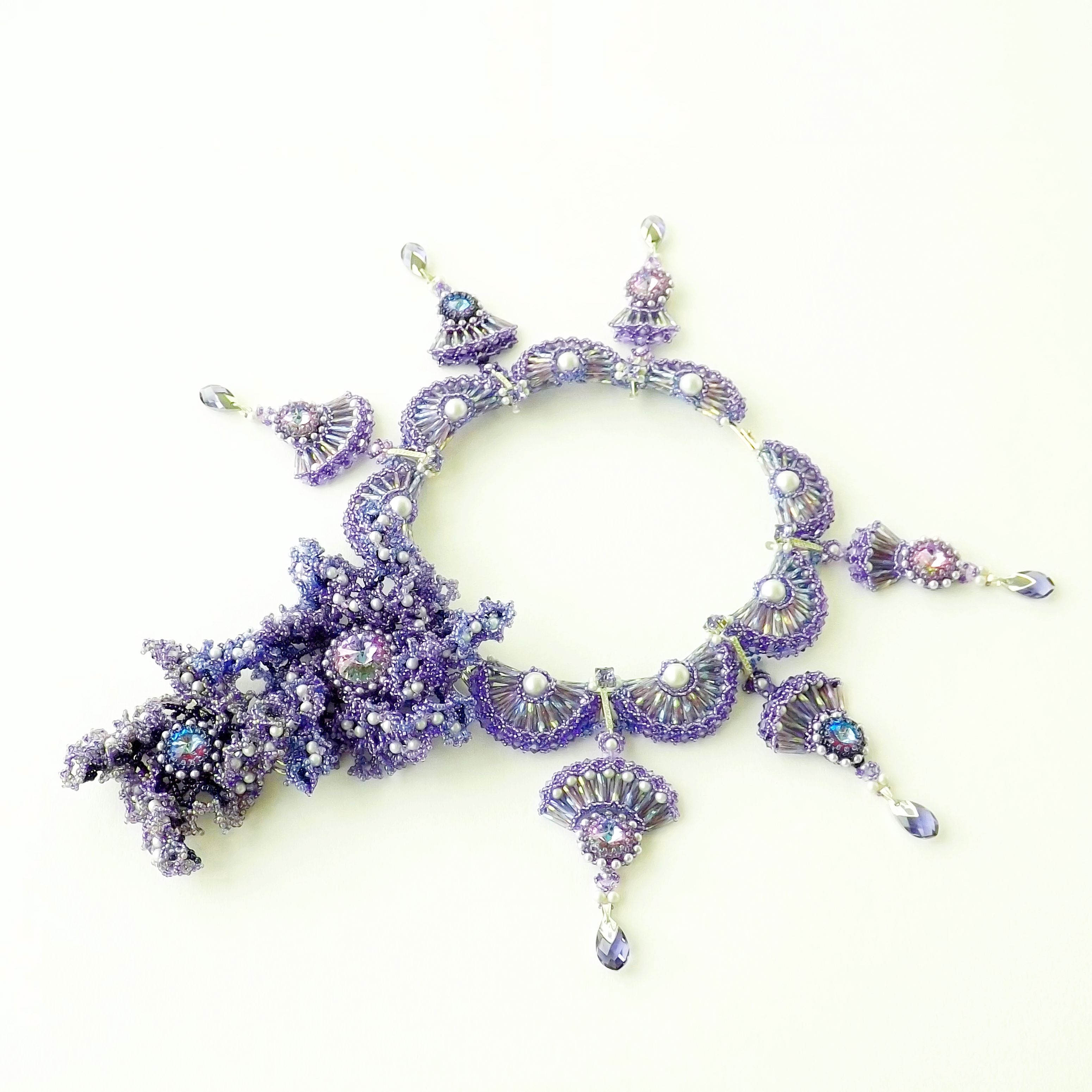 Парюра состоит из основы-воротничка (снимается с гривны), двух брошей и трех пар серег-подвесок, что позволяет носить элементы - украшения в различных сочетаниях и независимо друг от друга.