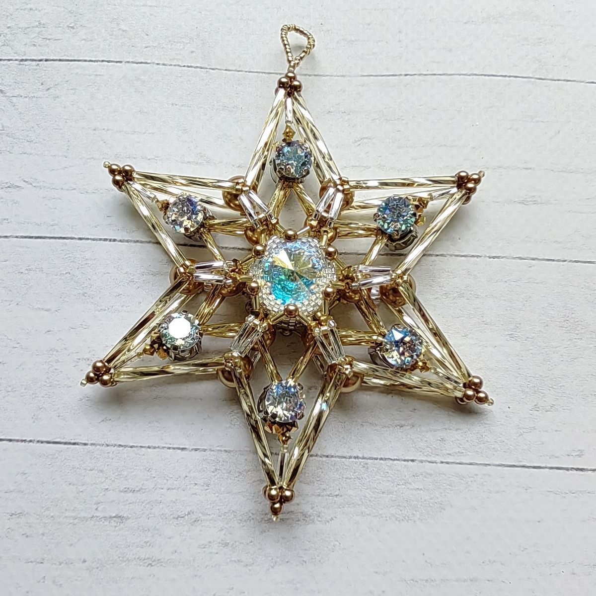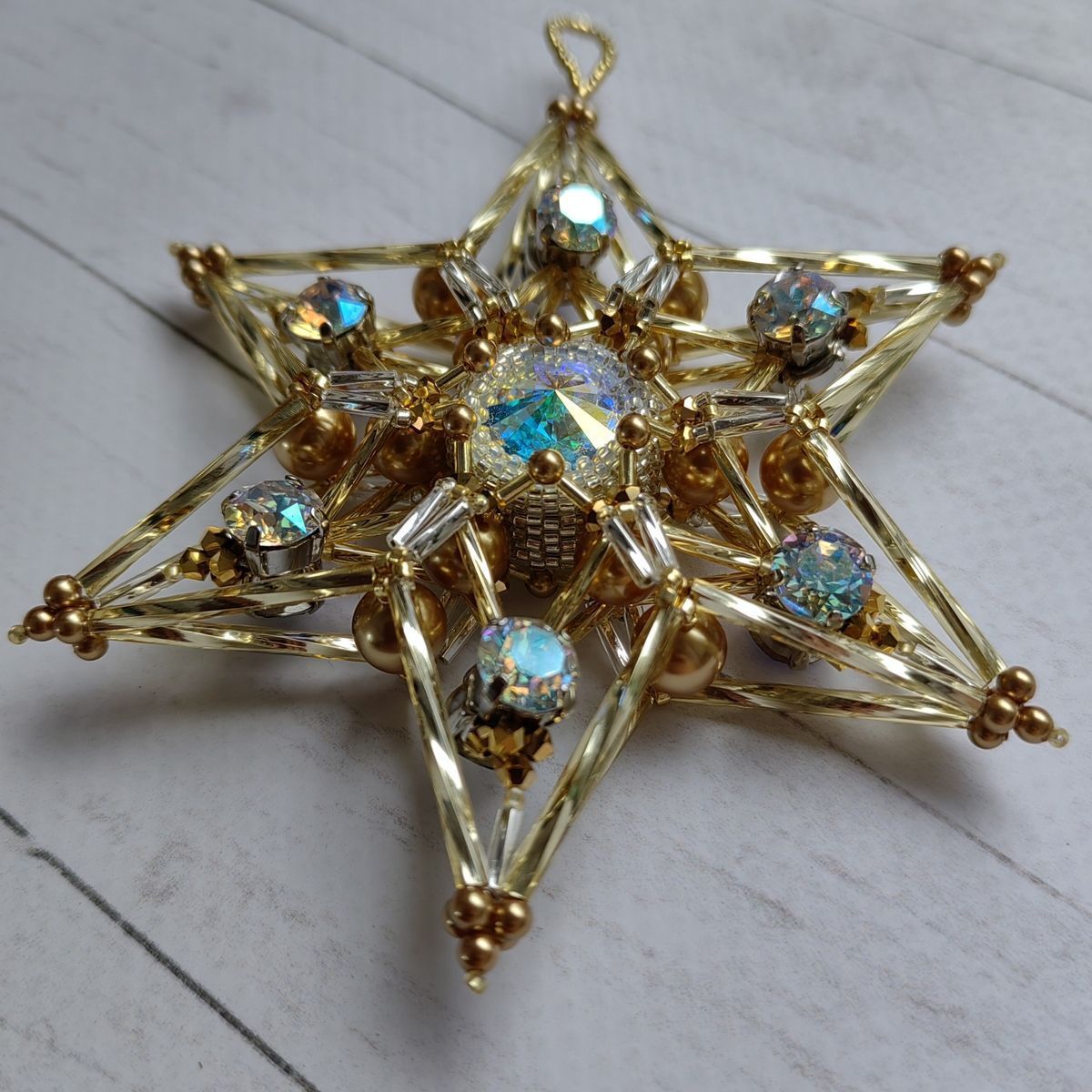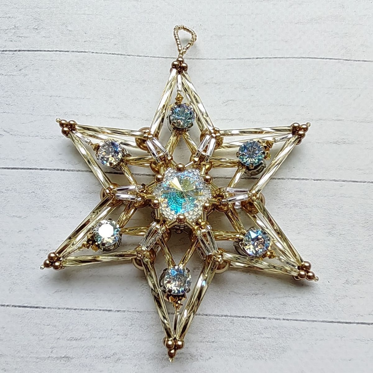 Объемная двухсторонняя елочная игрушка "Звезда-снежинка"