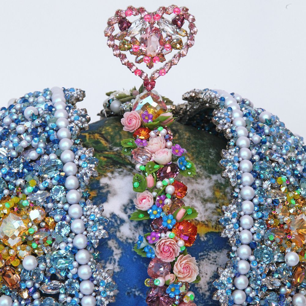 В основе работы лежит форма главной императорской короны России, как символ соединения двух полушарий - Запада и Востока. Известно, что любовь объединяет даже противоположности, создавая из различий нечто новое, общее, особенное. Венчает эти полушария -сердце, как символ самой любви и жизни.