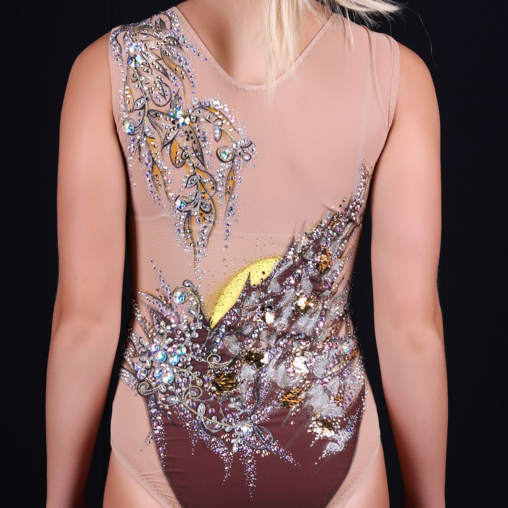 В центральной части купальника изображен лотос. Это цветок совершенства, он означает жизнь и смерть, возрождение и стремление к истине, чистоту и вечность. Раскрываясь с рассветом и закрываясь на закате, лотос олицетворяет возрождение Солнца, а значит, и любое другое возрождение, возобновление жизненных сил, возращение молодости, бессмертие.