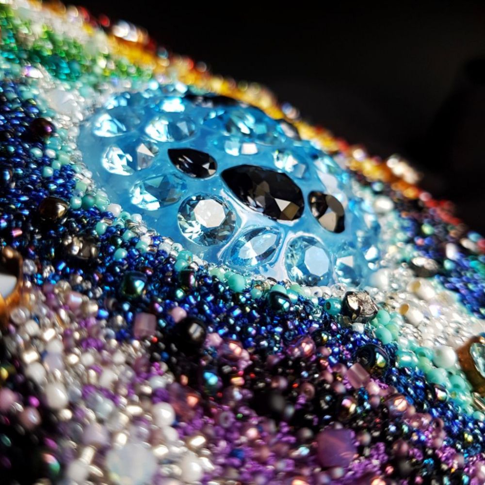 Когда вышла коллекция «Время сиять», я увидела кристаллы серии Ignite, и захотела воспользоваться их прозрачностью и подсветить их. После объявления темы конкурса, сомнений не было, работа должна сиять.
