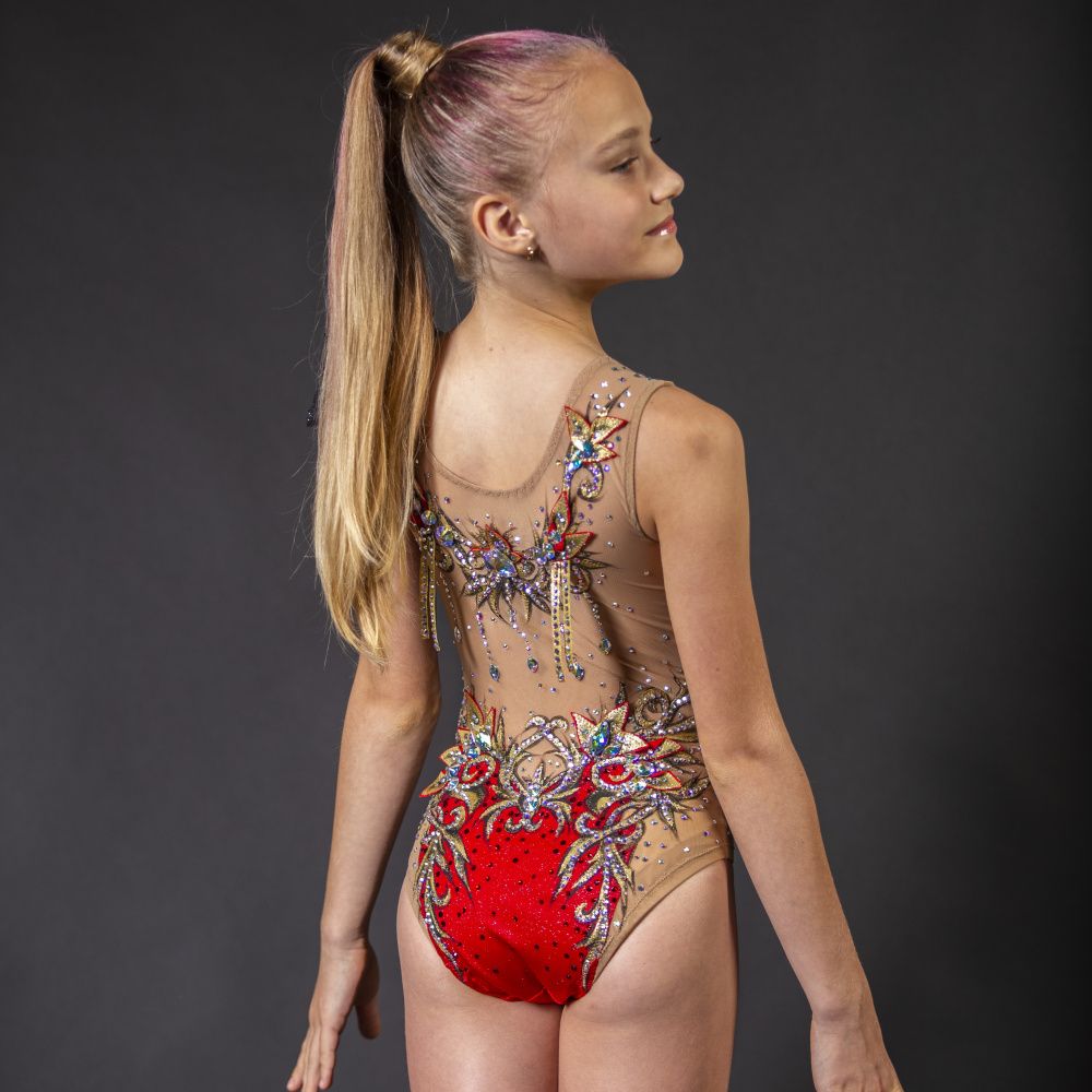 Классическое сочетание красно - черных оттенков, обрамленное шиком золотых вензелей, парящей легкостью объемных элементов и невесомой драпировки, ограненное многогранным блеском и бесконечным мерцанием россыпью камней Сваровски, приобретает совершенно иной неземной высший смысл, особенно актуальный в новых условиях современной жизни, суеты и неуверенности в завтрашнем дне в период пандемии. Представляю Вашему вниманию в первую очередь образ уверенной в себе спортсменки, четко формулирующей и осознающей свою цель, даже самую несбыточную, и смело идущую к ней. В этом образе для нее нет препятствий суетного мира, ее глаза широко распахнуты, а душа и сознание готовы к вызовам и переменам! Она знает себе цену, гордится своими достижениями, но не задирает нос, идет легкой, красивой, уверенной походкой по бурлящей страстями жизни в новом образе, который для нее - успешной и ослепительной - как вторая кожа, как ее второе Я!