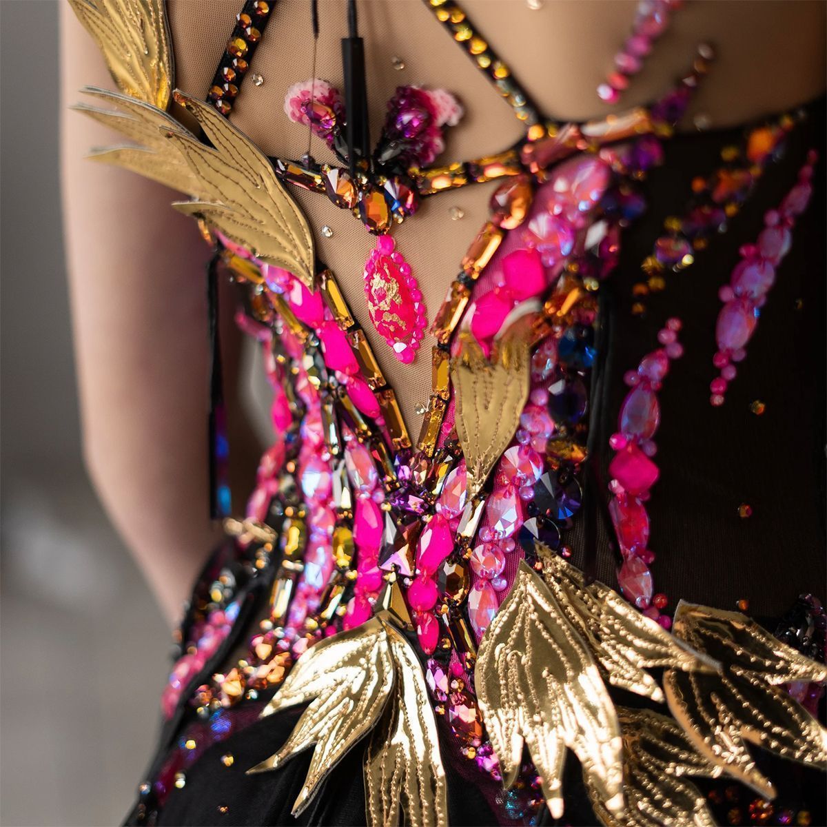 В работе используются итальянские пайетки и японский бисер. Дракон съемный, что делает купальник вариативным.