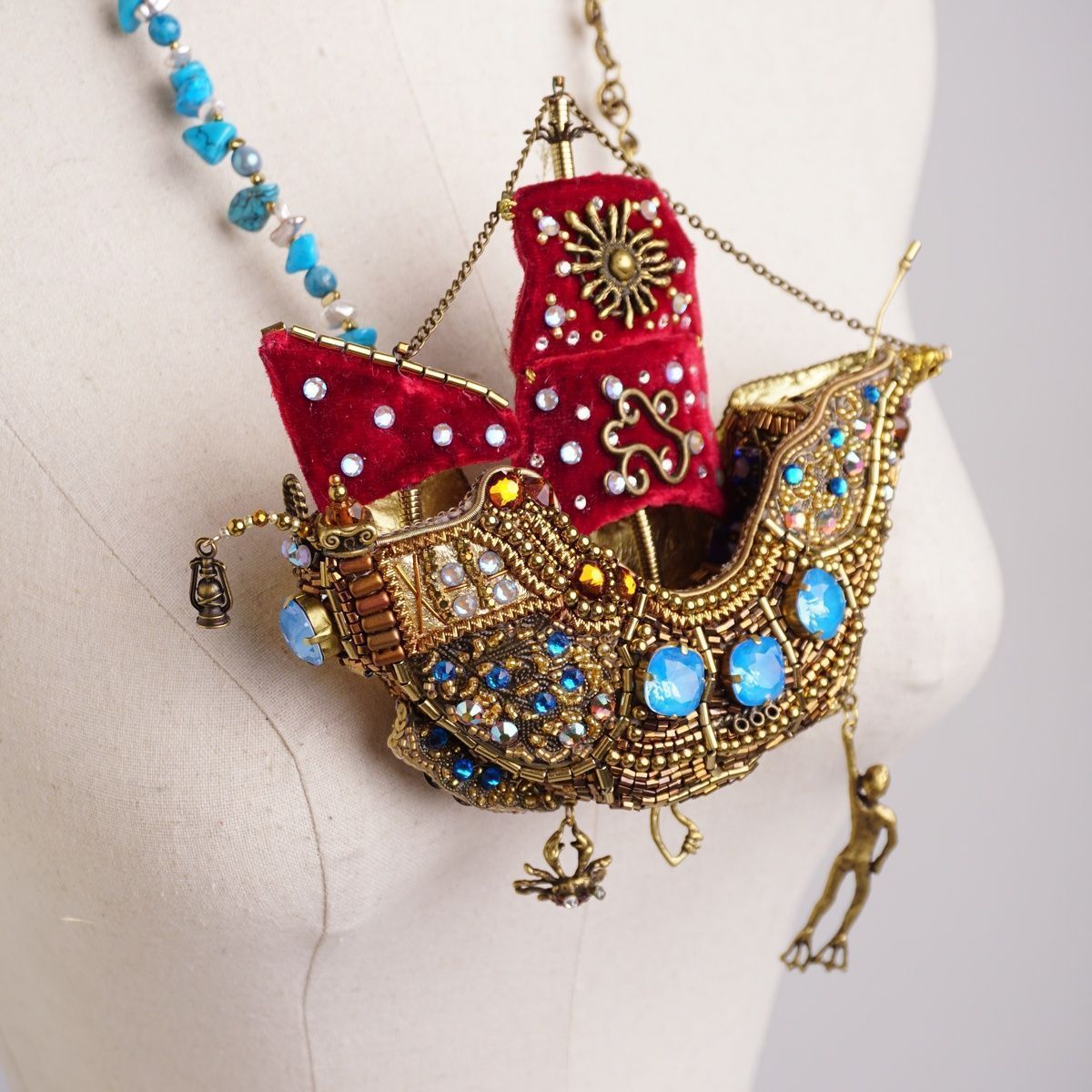 Существует много гипотез, одна из которых легла в сюжет моего колье-трансформера. Согласна легенде, в водах Бермудского треугольника обитает Кракен, который топит корабли, находящиеся рядом с ним.