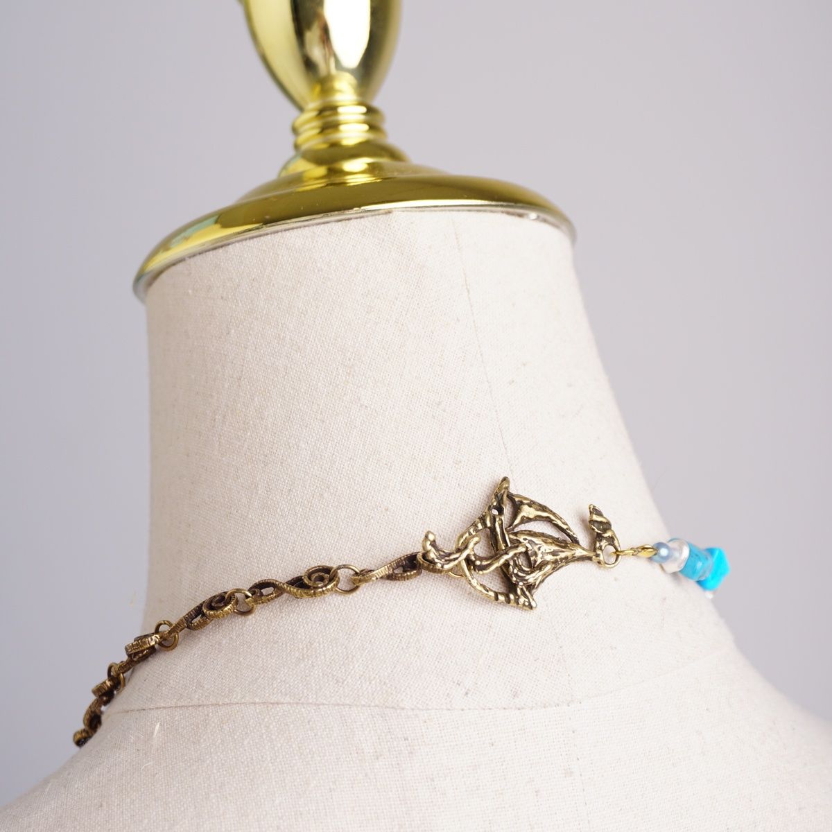 За основу колье взят объёмный корабль под названием «Леди Ханна», плывущий по волнам Атлантического океана. Об это символизирует латуневая цепочка, напоминающая «блуждающие волны», в конце которой имеется тогл в виде корабля. Он отчаливает от берегов, состоящих из бирюзы, агата, перламутра и гематита.