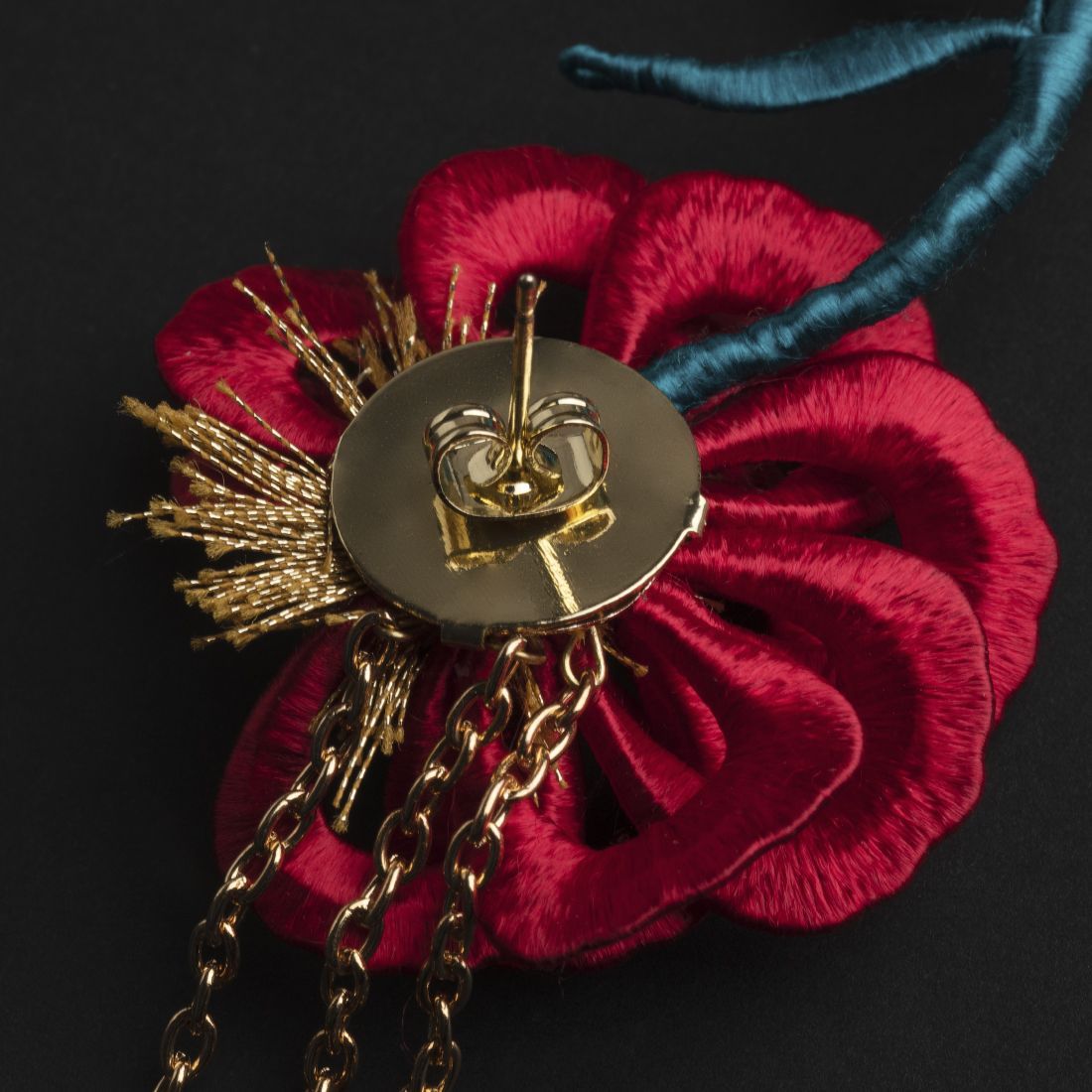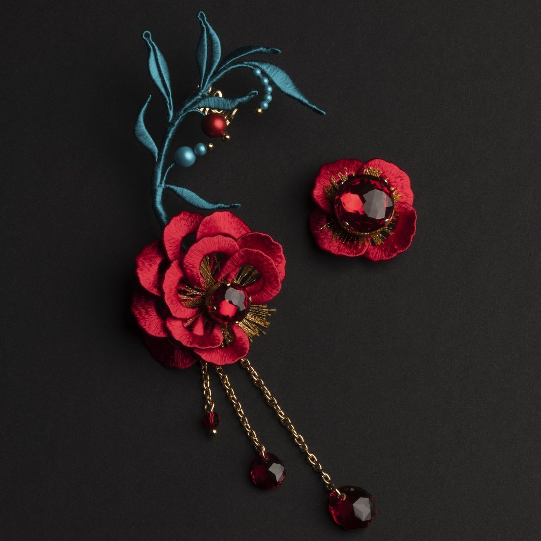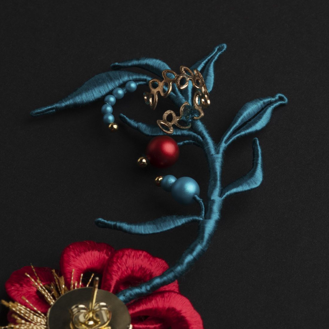 Тема конкурса заставила меня обратить свой взор на старинный русский народный промысел, появившийся ещё в XVII веке – хохлому. Мы привыкли видеть эту прекрасную декоративную роспись в деревянной посуде и мебели, мне же захотелось показать её с необычной стороны – ярких серёг. Серьги выполнены в традиционных красных, золотых и зелёных тонах. Цветы, ветки и ягоды – также отражают традиционный узор. Несмотря на то, что за основу взято довольно древнее искусство, серьги выглядят актуально и современно. Это моё прочтение хохломы через призму современности.