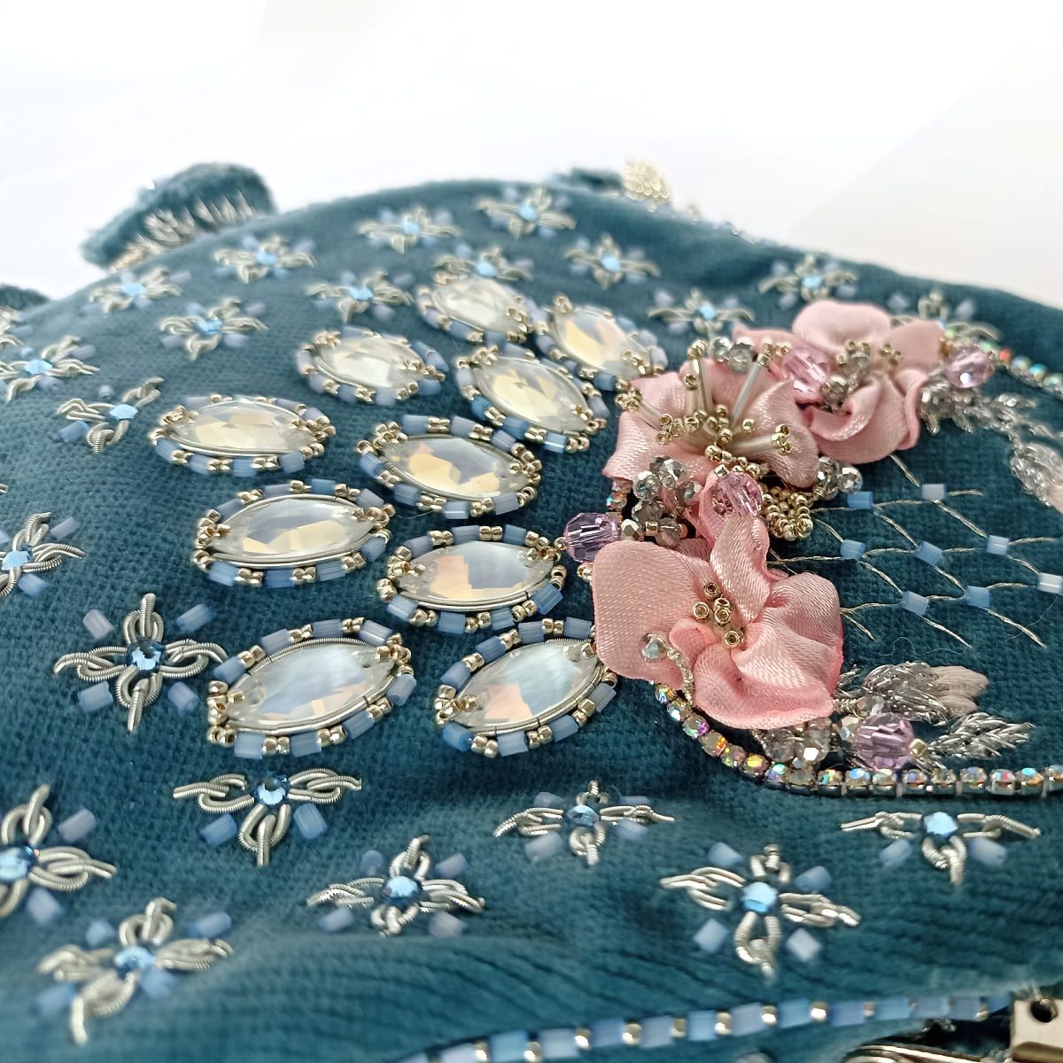 Карета подъехала к парадному крыльцу и, поднявшись по ступеням, мы оказались в парадном зале. Он сиял множеством огней, исходящих от золотых стен и украшений дам. Юные участницы бала были наряжены в белоснежные платья и драгоценности, выдержанные в светлых, пастельных тонах. Остальные участники бала выбирали свой цвет: у меня был голубой. И сумочку выбрала под стать платью — нежно-голубую с россыпью блестящих камней, которые образовывали кольцо с веером.