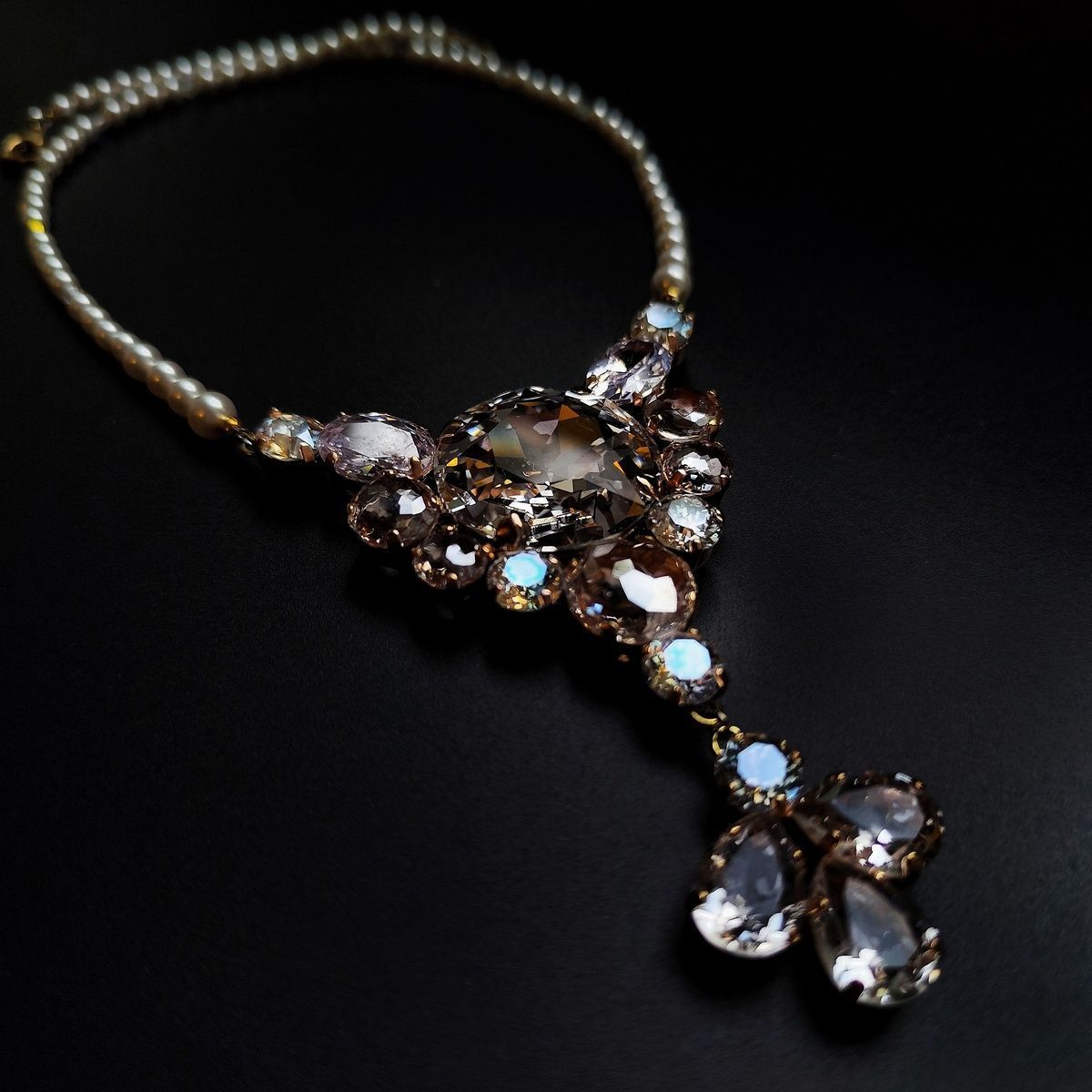 Колье создано в честь балов, где каждый взгляд, каждый шаг — как движение света по граням кристаллов.