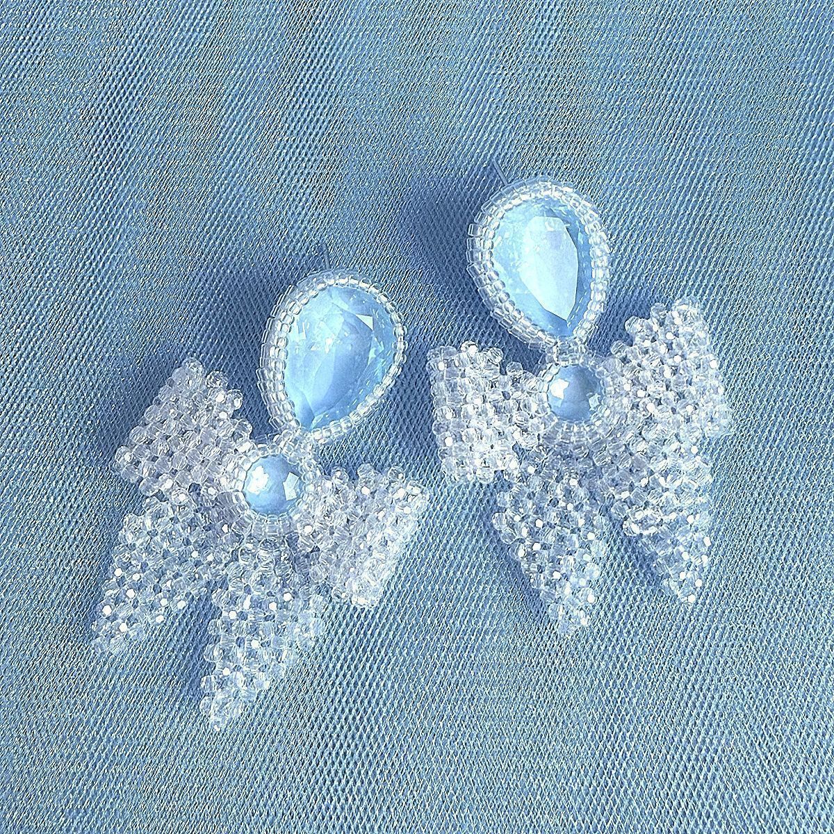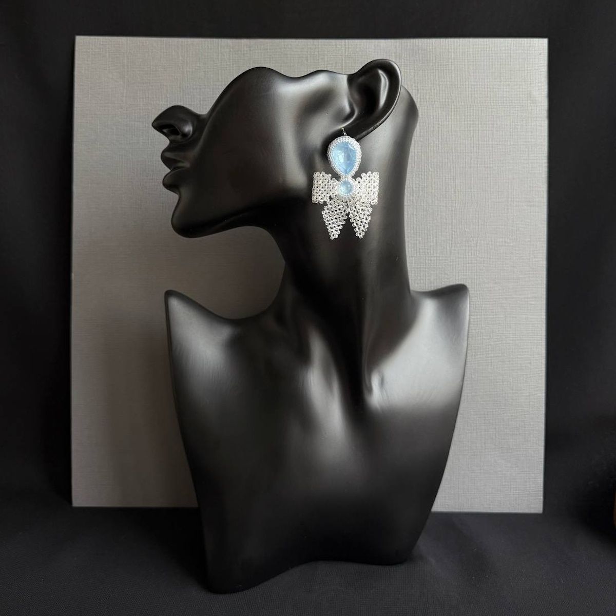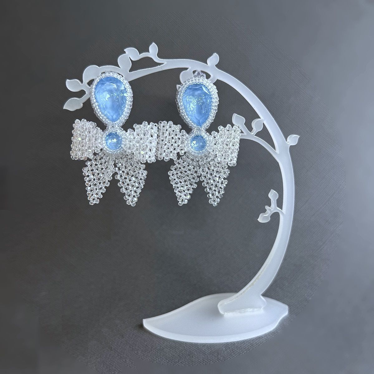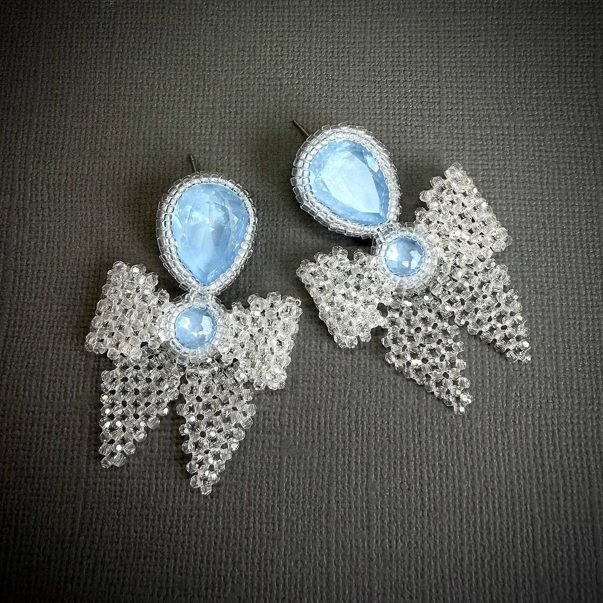 И именно для нее предназначены эти серьги, изготовленные из кристаллов Swarovski цвета Crystal Sky Ignite, напоминающих небо ранней весной, и мельчайших прозрачных бусинок размером всего 2 мм. Эти серьги при каждом повороте головы будут разбрасывать вокруг яркие искорки, привлекающие внимание окружающих. И в то же время, благодаря своей нежности, не будут затмевать красоту и молодость их хозяйки.